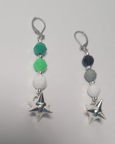 Material: Stainless steel earring hooks with a silver alloy charm and acrylic beads,